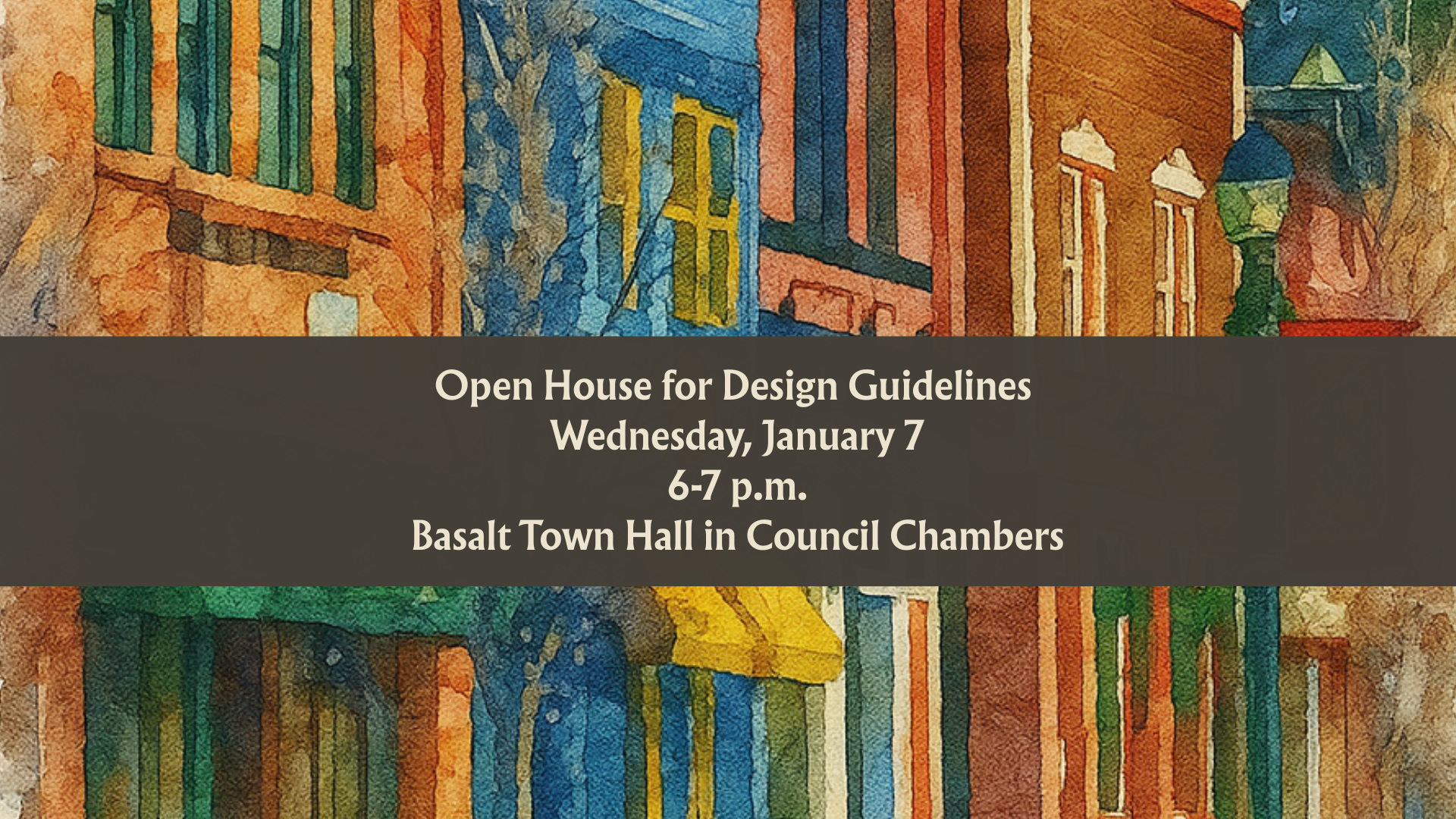 The Town of Basalt is hosting an open house for the community to review the progress of the Midland Avenue Design Guidelines on Wednesday, January 7 from 6 – 7 p.m. in Basalt Town Hall at 101 Midland Avenue.